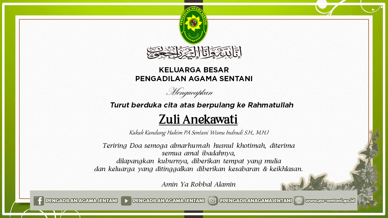 Turut Berduka Cita Atas Berpulang Ke Rahmatullah Kakak Kandung dari Bapak Wisnu Indradi S.H., M.H.I (Hakim Pengadilan Agama Sentani)