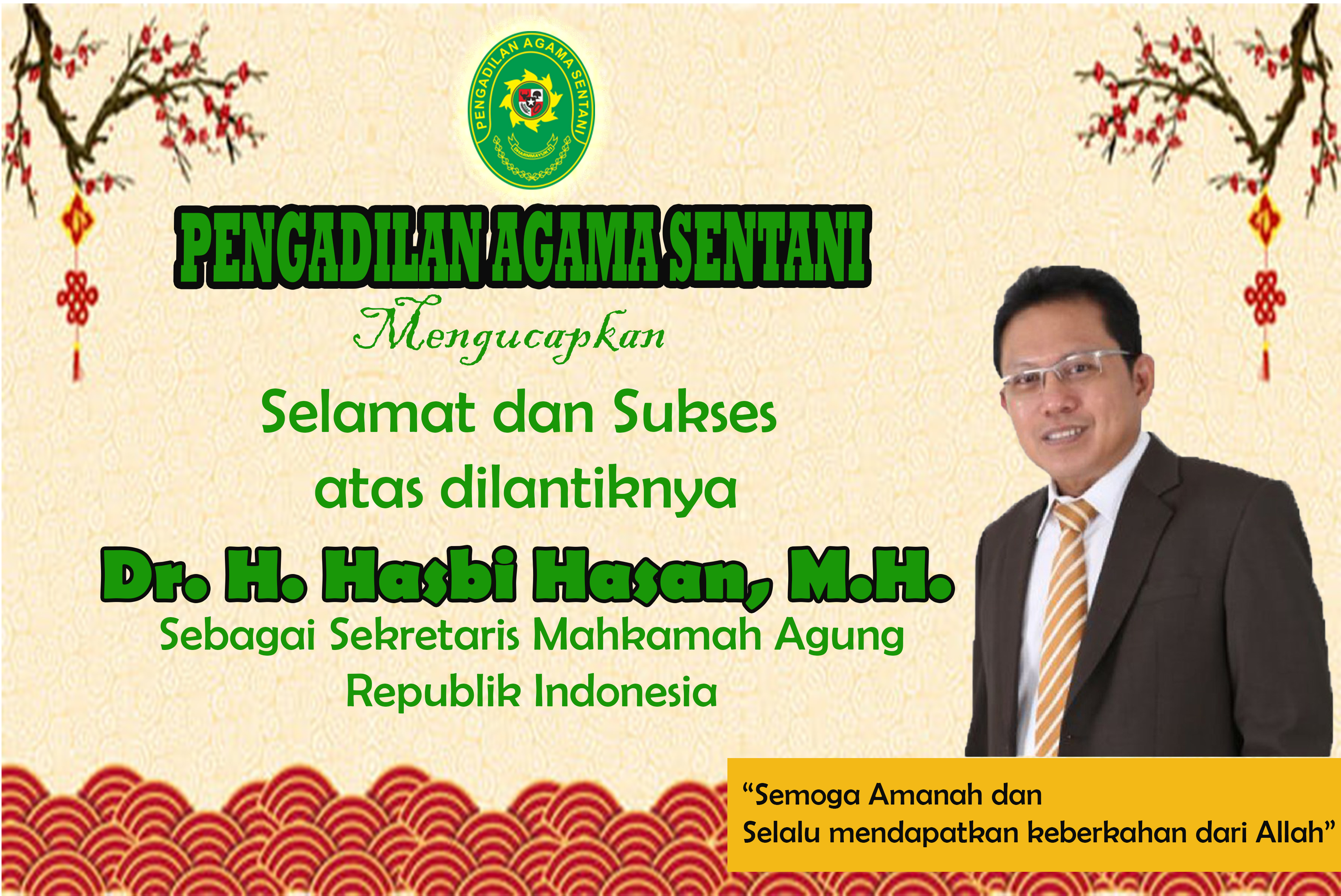 Ucapan Selamat kepada Sekretaris Mahkamh Agung RI Written by KESEKRETARIATAN on 22 July 2021. Written by KESEKRETARIATAN on 22 July 2021. Hits: 857 Selamat atas dilantiknya Dr. H. Hasbi Hasan, M.H. sebagai Sekretaris Mahkamah Agung Republik Indonesia