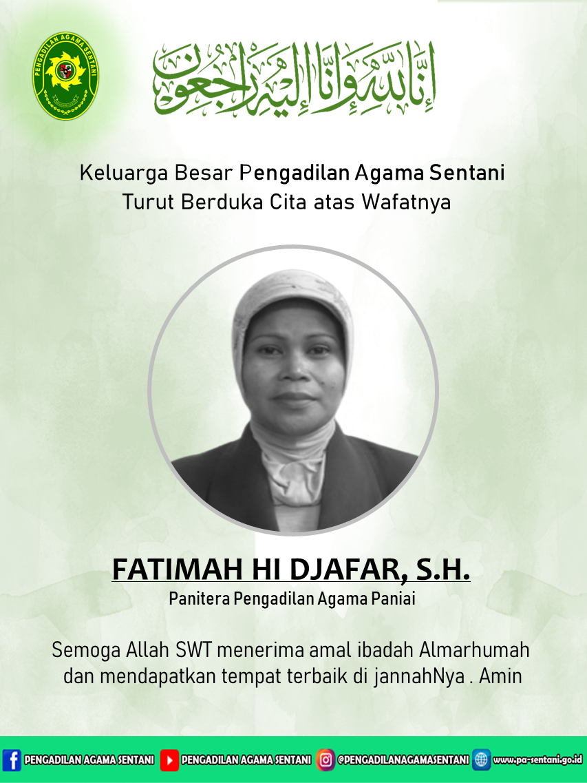 Turut Berduka Cita Atas Berpulang Ke Rahmatullah Panitera PA Paniai Written by Admin on 02 August 2021. Written by Admin on 02 August 2021. Hits: 979 Turut Berduka Cita Atas Berpulang Ke Rahmatullah Panitera PA Paniai (Mantan Pegawai Pengadilan Agama Sentani)